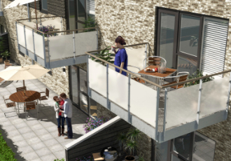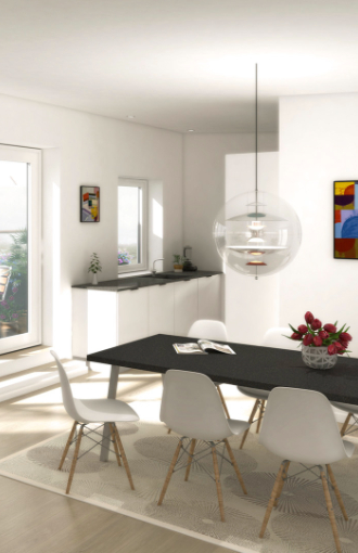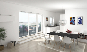 Alle lejligheder er udviklet med tanke på, at her skal være rart at bo. Uanset type har hver lejlighed et centralt køkken/alrum i åben forbindelse til stue og adgang til enten stor terrasse, rummelig altan eller dejlig tagterrasse med atrium i termoglas. Rummene fremstår lyse og imødekommende med en behagelig atmosfære. Indeklimaet er sikret gennem et genveks-anlæg og den ekstra store loftshøjde bidrager både til indeklima og følelsen af mere plads. Den er 270 cm i stue og 1. sals lejligheder, og på 2. sal er der skrå lofter i højder fra 230 -og op til 290 cm. Alt i helt nye kvalitetsmaterialer og bygget efter nyeste bygningsreglement, med dertilhørende lavt varmeforbrug.